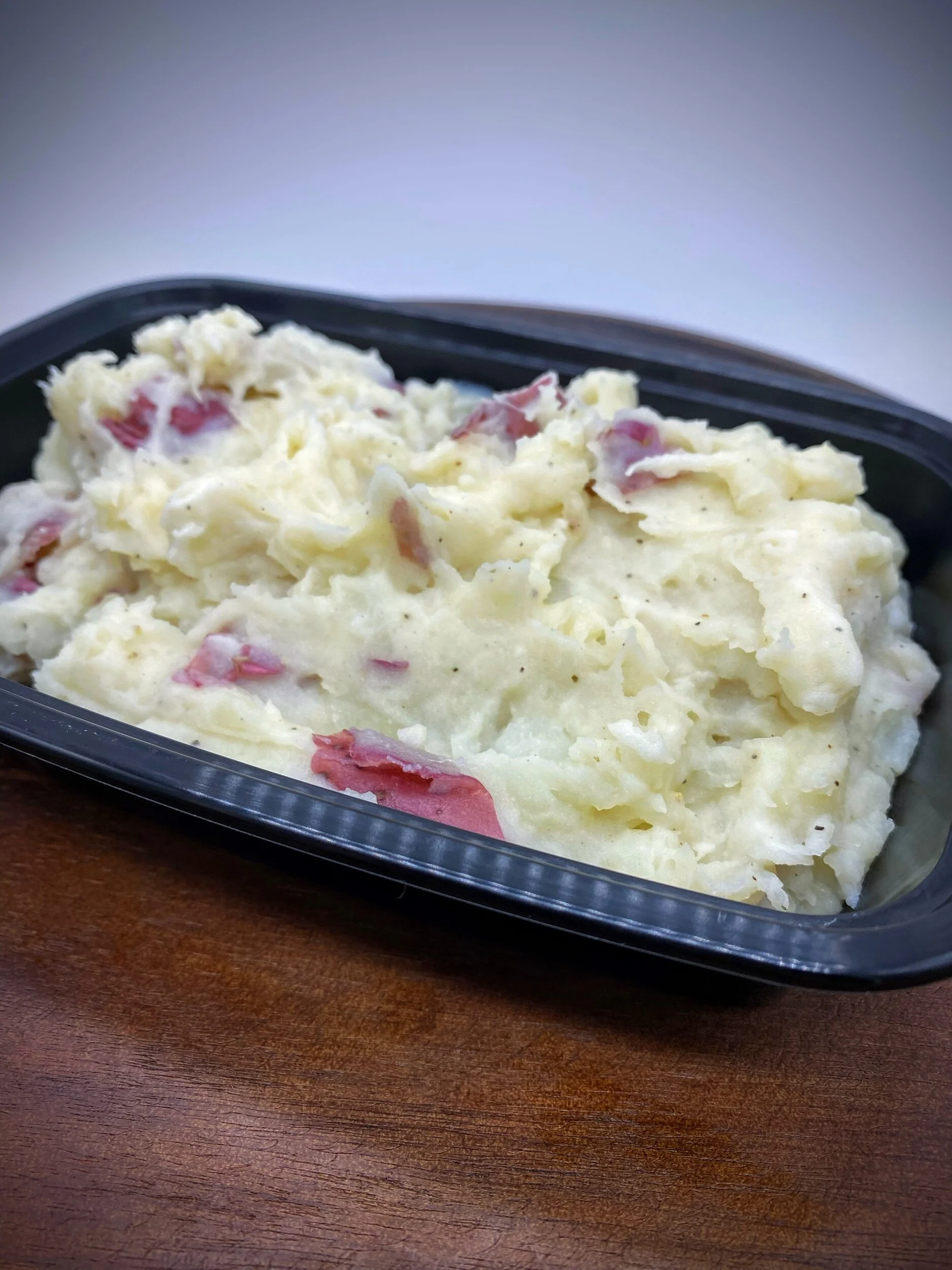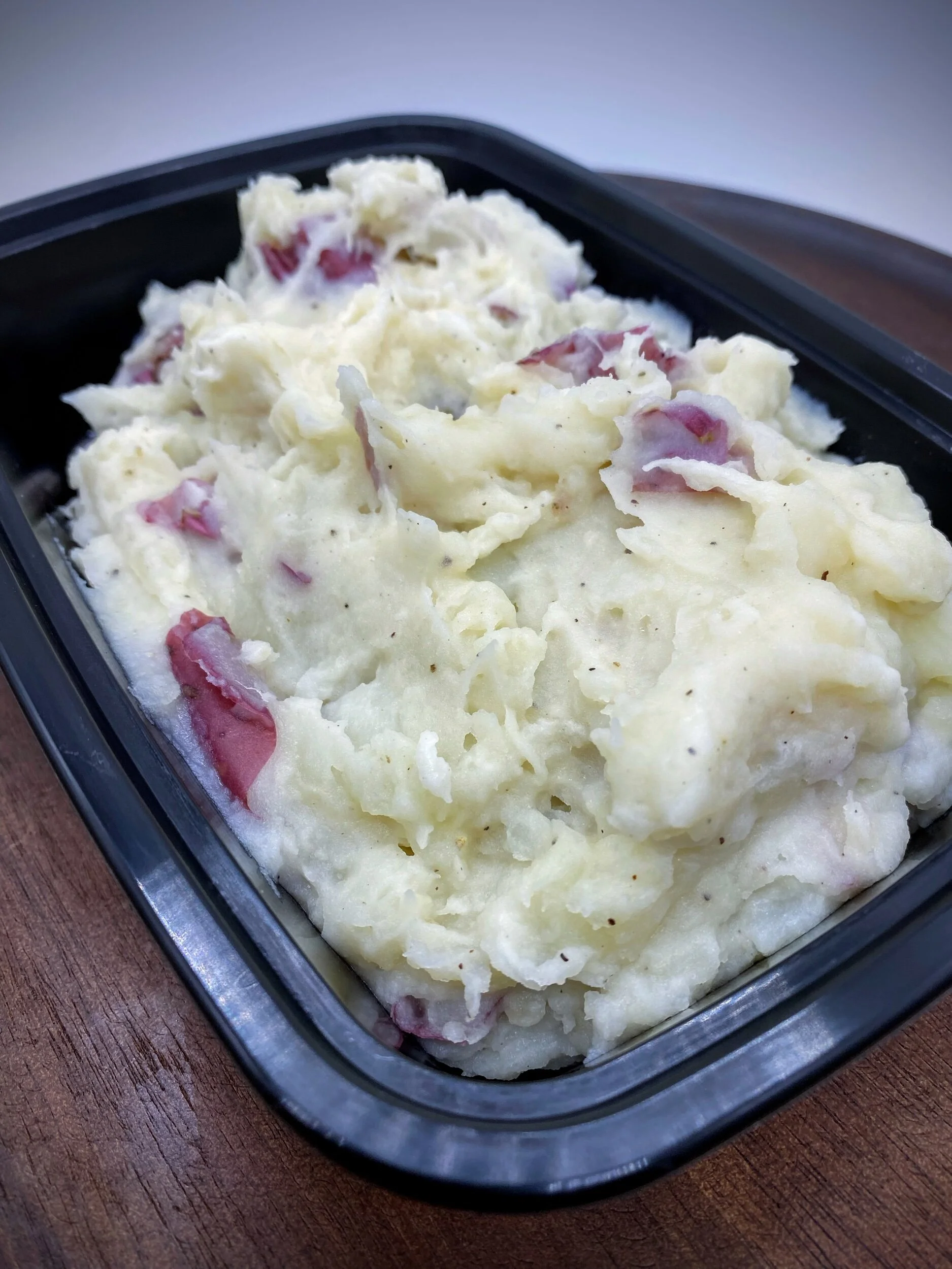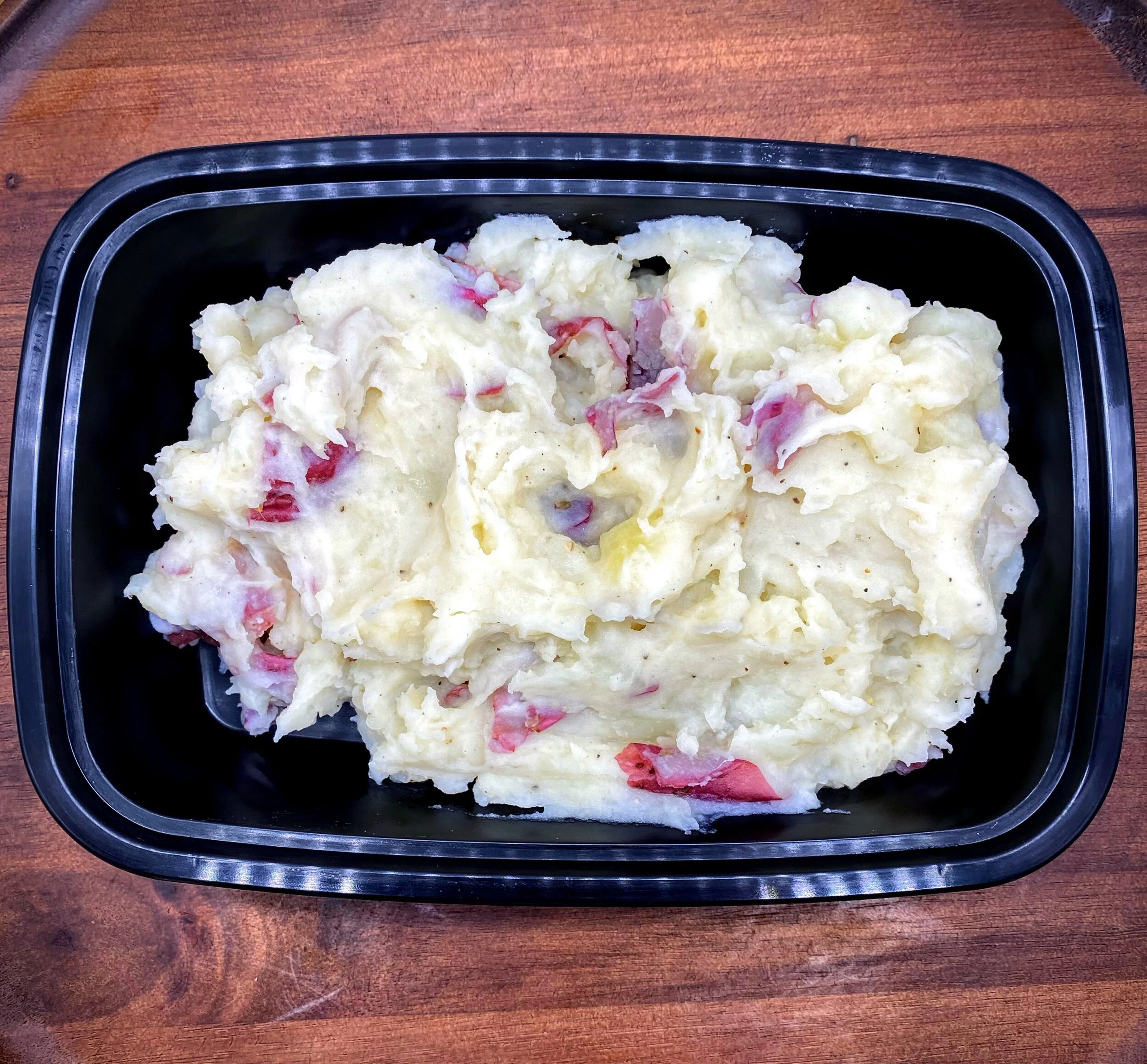 One pound of creamy mashed red potatoes made with Greek yogurt and almond milk for extra protein and a light, fluffy texture.