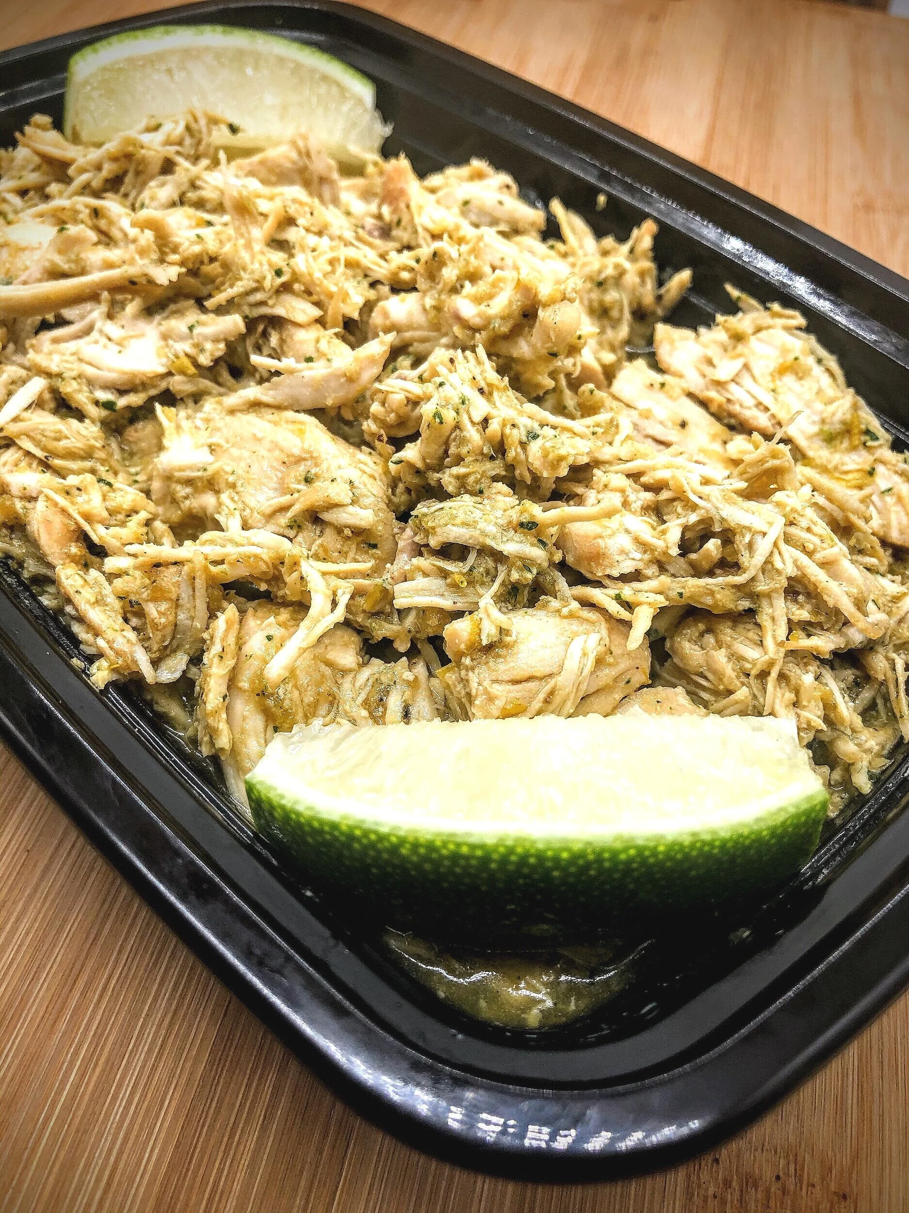 Shredded chicken breast marinated in a bold blend of green chiles, garlic, and fresh lime. Flavorful, high-protein, and perfect for easy meals throughout the week.