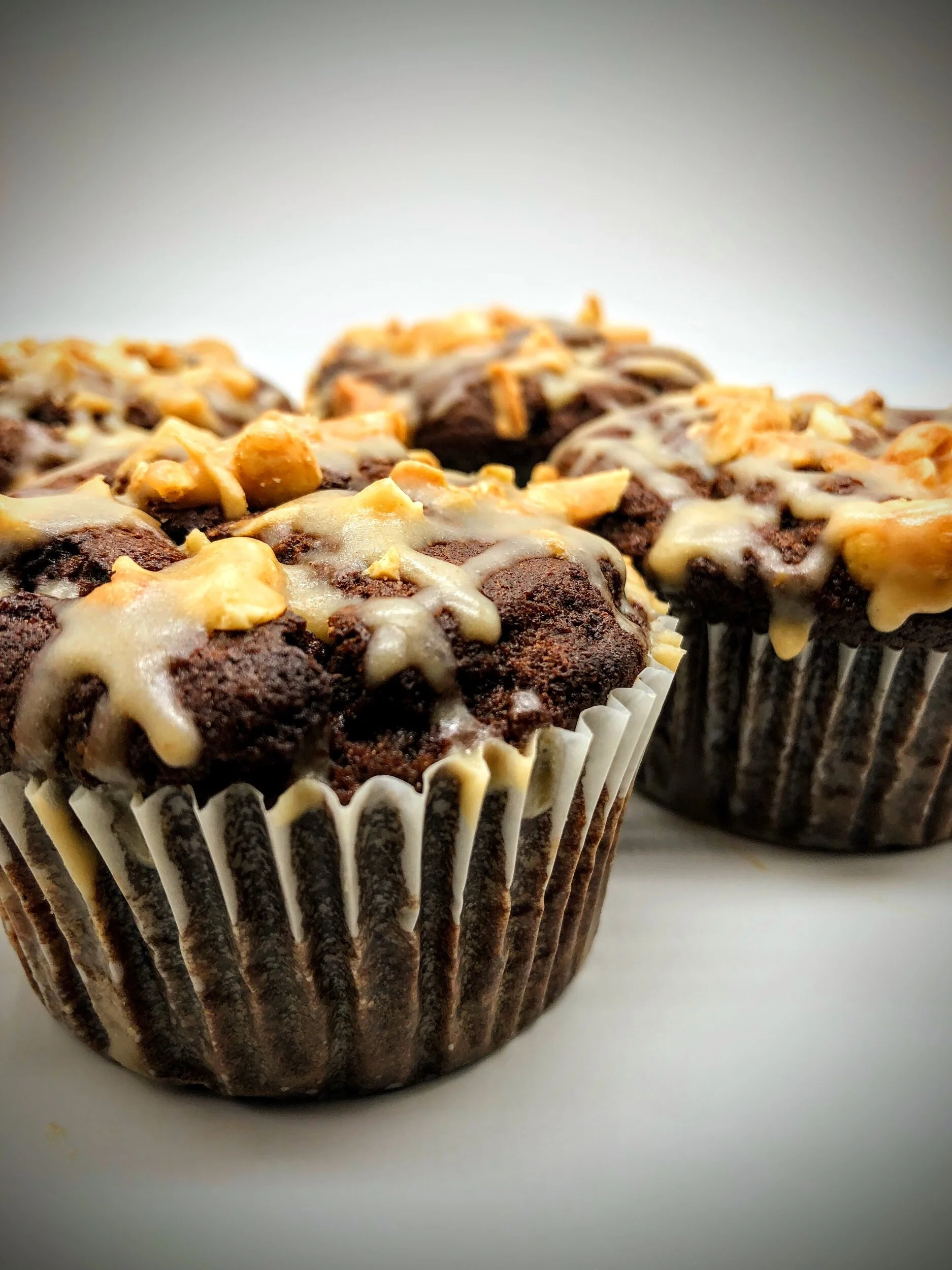 Fluffy, rich muffins made with almond flour, coconut flour, whey protein, Greek yogurt, banana, and peanut butter for a soft, cake-like texture. Lightly sweetened with stevia and erythritol, deep cocoa flavor, and finished with a drizzle of peanut butter icing for a clean, indulgent treat.